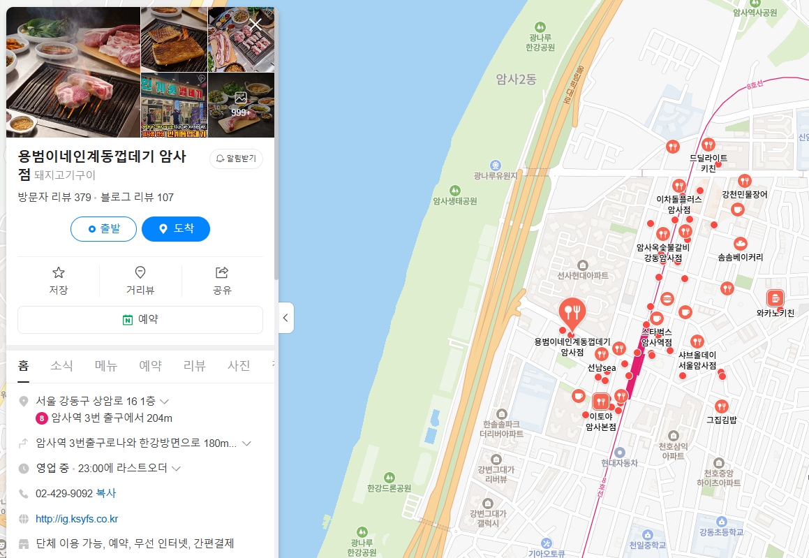 ‘용범이네 인계동껍데기 암사점’은 암사역 인근에 위치해 있어 ✔ 지하철을 이용한 접근이 매우 뛰어납니다. 도보 3~5분 거리로 역세권 입지이며, 주변에도 다양한 먹거리 골목이 함께 형성되어 있어 식사 후 산책하거나 2차를 가기에도 좋은 위치입니다.
